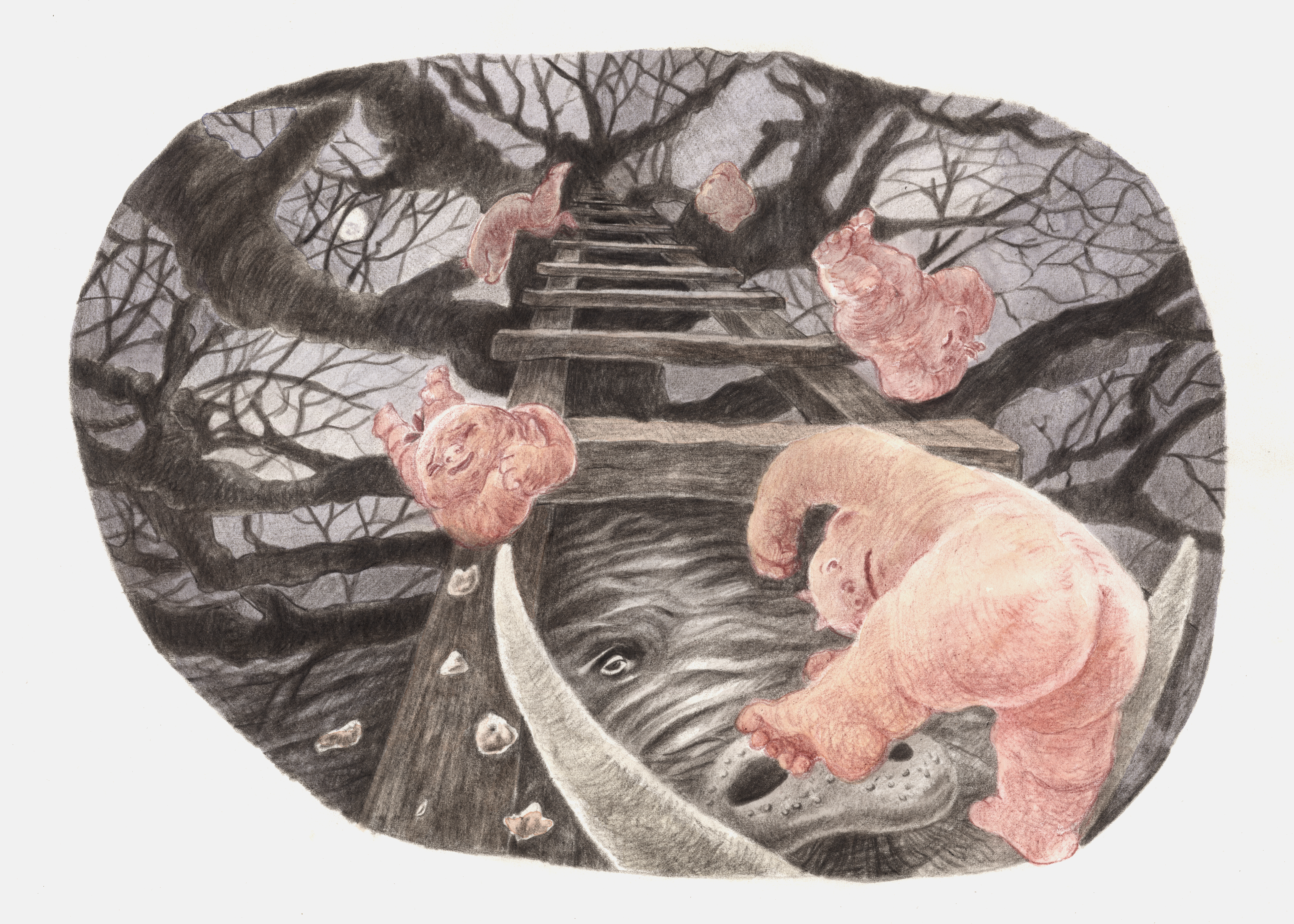 lavoro personale di illustrazione per il testo di Nicola Cinquetti, "Pilotto", per Ed. Rizzoli, progetto di tesi per il Master di Illustrazione per l'Editoria, Ars in Fabula, ABAMC, 2024.